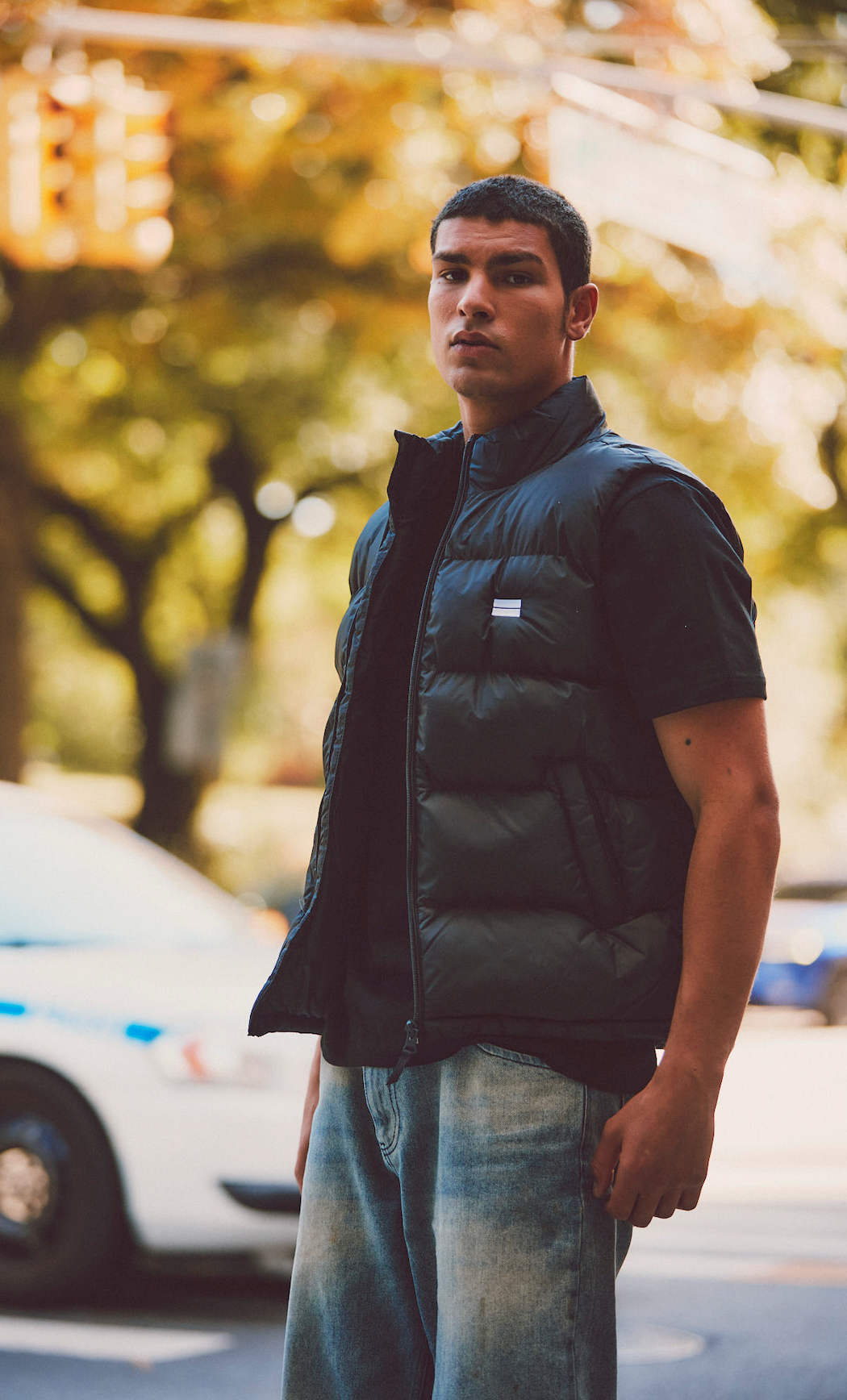 Our new polar puffer gilet is crafted from 100% recycled materials, offering warmth and sustainability in a stylish everyday look.