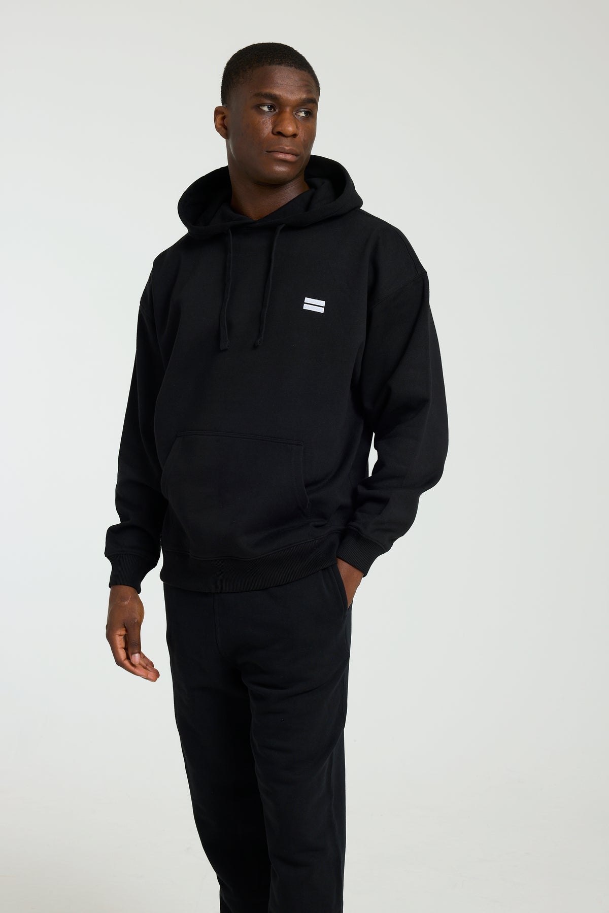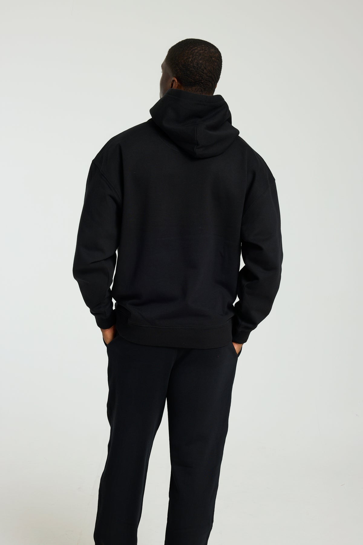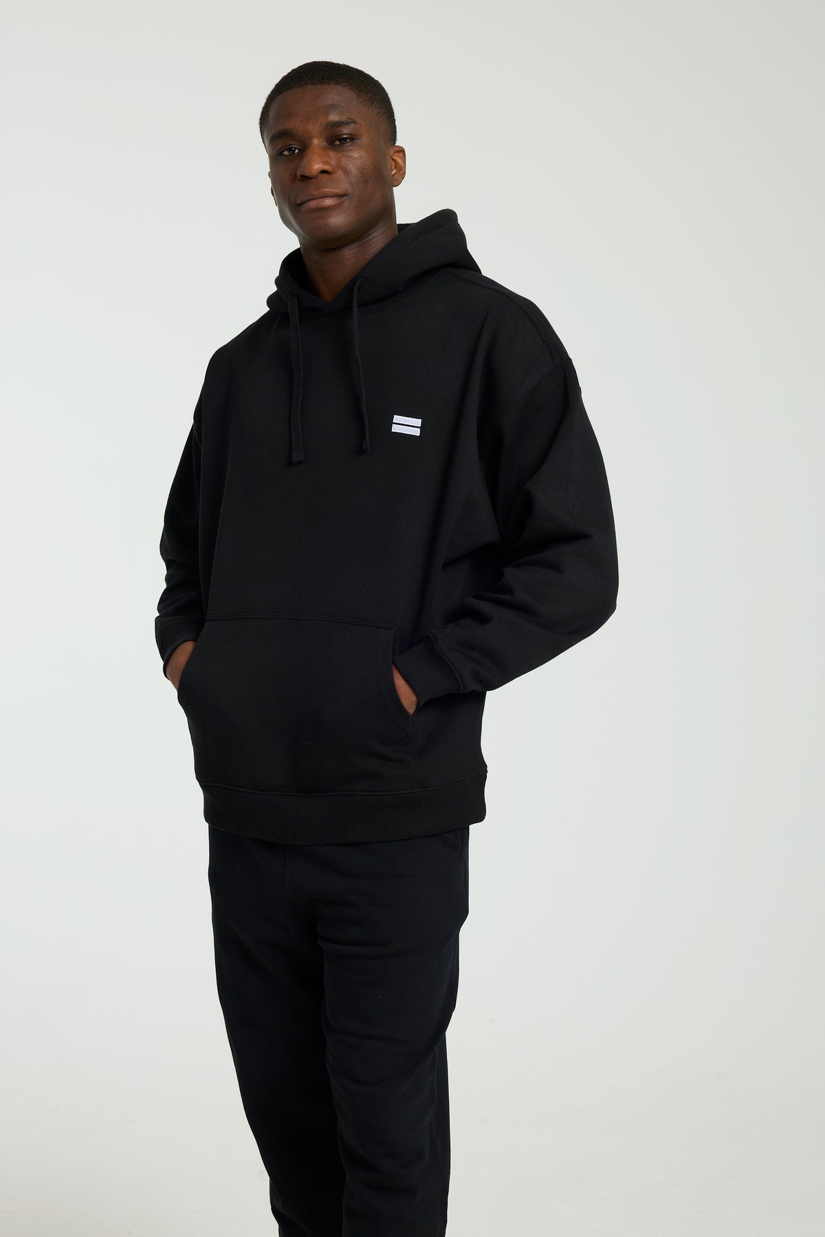Made with 100% Organic Cotton and designed with an intentionally relaxed fit, this black hoodie drapes perfectly for the ideal oversized look. Dropped shoulders, roomy sleeves, and a generously sized hood complete the look, making it ideal for lounging, layering, or making a statement on the go.