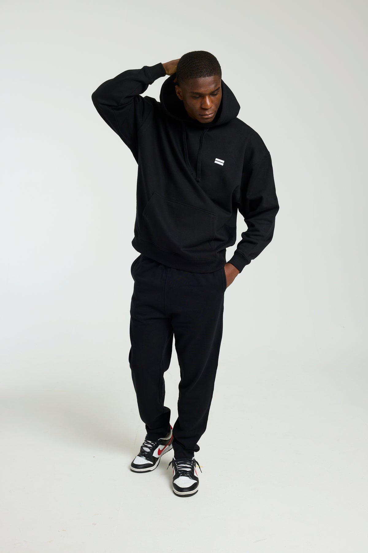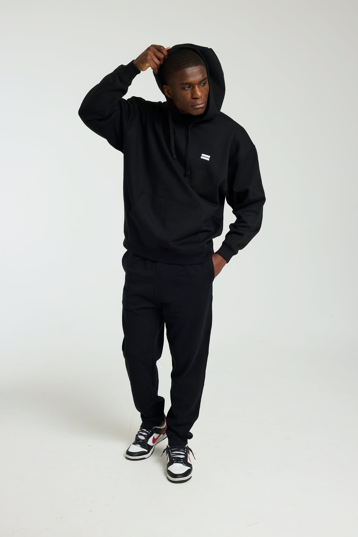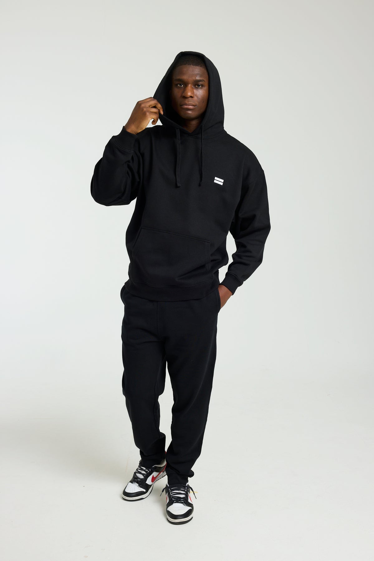 Made with 100% Organic Cotton and designed with an intentionally relaxed fit, this black hoodie drapes perfectly for the ideal oversized look. Dropped shoulders, roomy sleeves, and a generously sized hood complete the look, making it ideal for lounging, layering, or making a statement on the go.