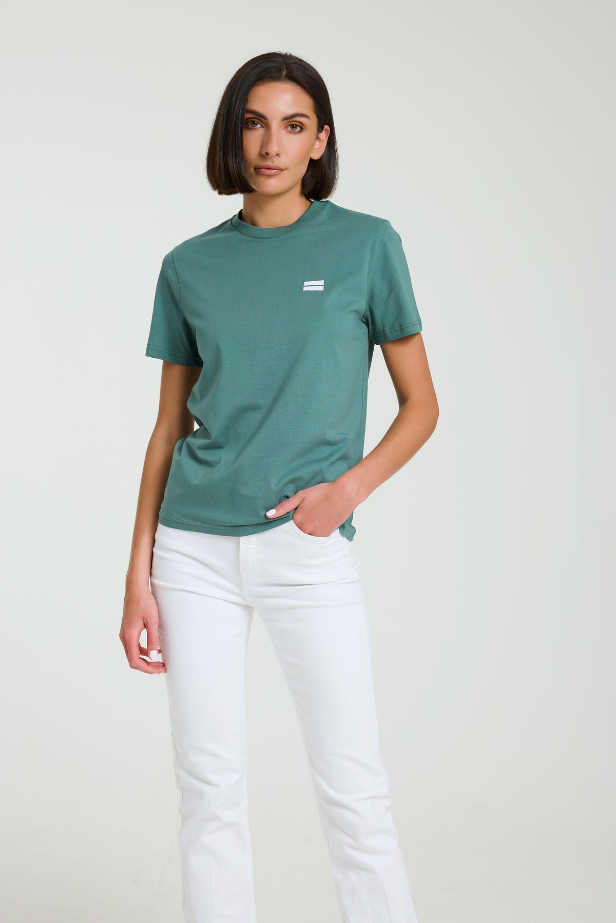 Refresh your Summer essentials with the Comfort of Colour Collection. Made from 100% Organic Cotton, this t-shirt in Evergreen is drawn from nature and effortlessly moves from season to season, day into night.