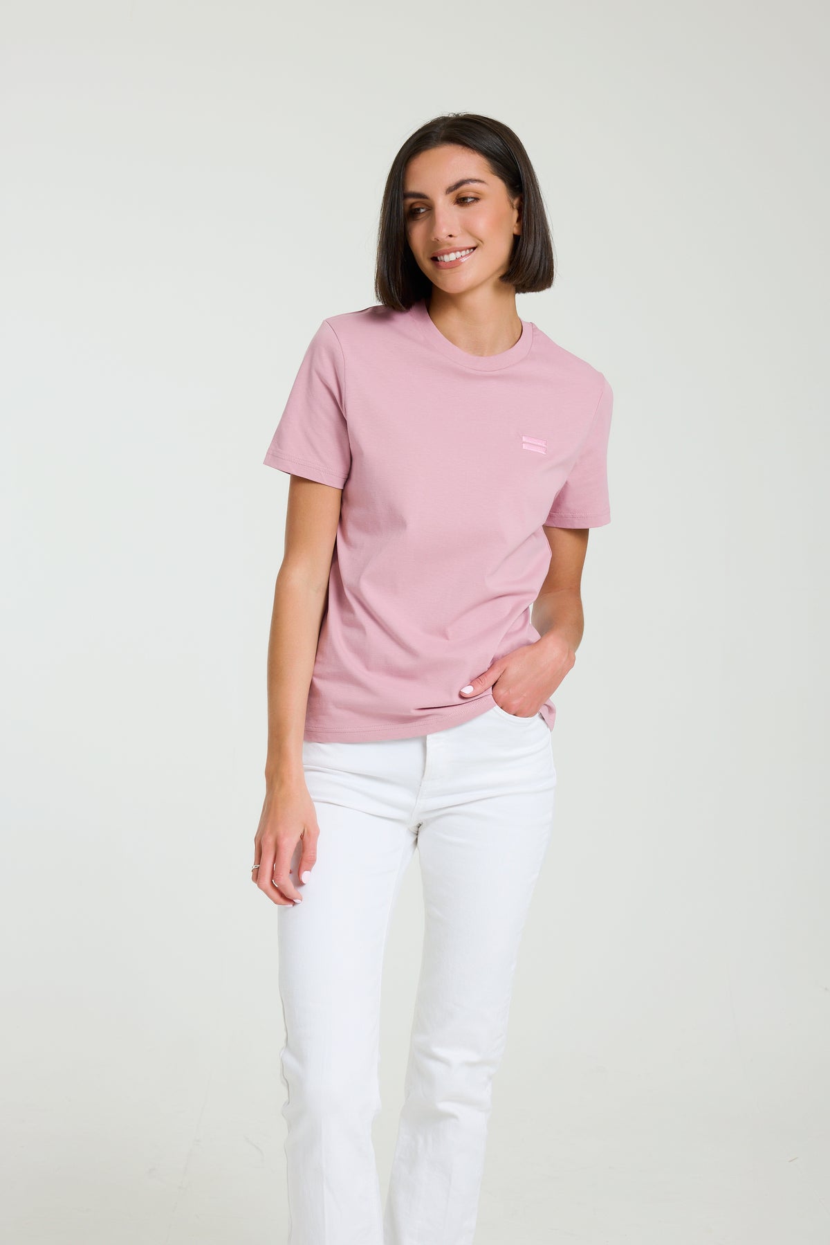 Refresh your Summer essentials with the Comfort of Colour Collection. Made from 100% Organic Cotton, this t-shirt in Muted Pink is subtle but striking, featuring a vibrant tonal embroidery providing a unique touch.