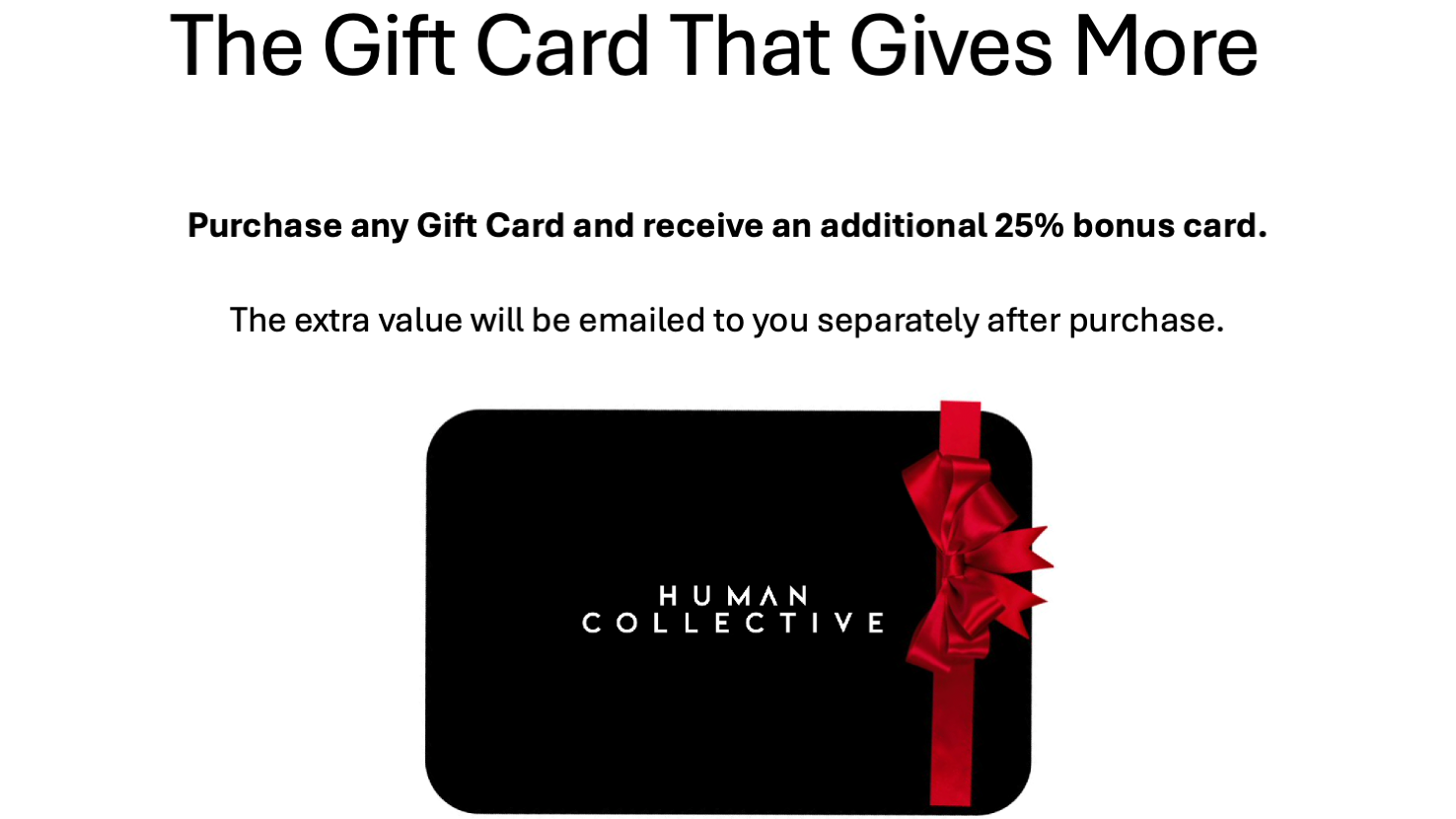Pick a Human Collective gift card amount from the options above and we will send a code to your email address to the value of that amount.
